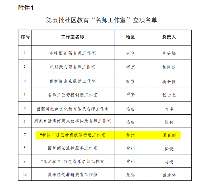 日前,由江苏省社会教育服务指导中心发布了《关于遴选第五批社区教育“名师工作室”及第三、四批次总结评优的通知》文件,经评审确定第五批社区教育“名师工作室”建设单位共33个,常州地区共3个。由我校设备工程学院孟亚俐老师领衔的《“智能+”社区教育