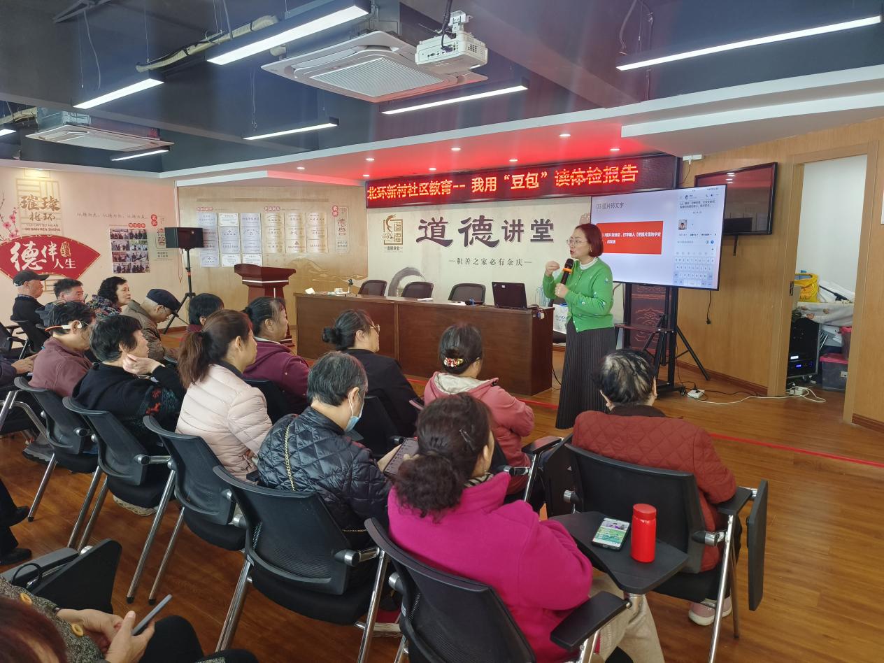 近日,红梅街道北环新村社区内暖意融融,一场专为老年人量身打造的《我用“豆包”读体检报告》社区课程在此温馨开课。该课程依托天宁区老年大学(天宁区社区培训学院)与江苏城乡建设职业学院联合组建的“幸福微学堂”智慧助老学习共同体,由江苏城乡建设职业