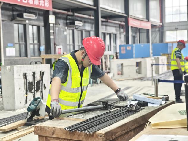 学院抽调“世界技能大赛混凝土建筑项目金牌教练”、“全国技能大赛手工木工项目金牌教练”等12名“双师型”骨干教师,组建泥瓦(教练蔡雷)、木工(教练郭雨婷)、钢筋(教练董建军)、水电(教练文畅)四支教练突击队,白天分模块实操、晚间集中点评。针对评分细则0.1mm的误差限值,教练团自制“毫米级”模具,形成“基本功——精度——速度——美感”四阶递进训练模式;每晚9:00前必须完成“错题本”复盘,次日早课再逐人过关,实现问题“不过夜”。