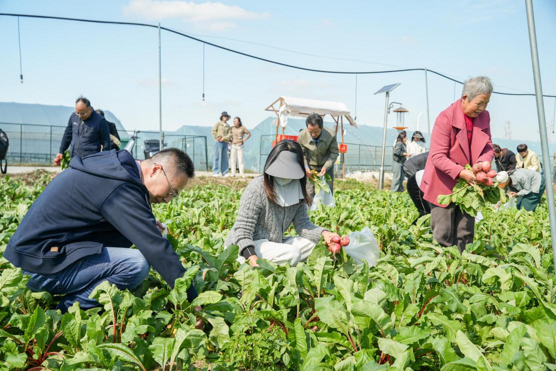 随后,大家驱车前往“杏花春雨农业科技园”,参与丰富多彩的采摘活动。在农田中,退休教师们兴致勃勃地体验着亲自采摘新鲜的蔬果,感受着大自然的魅力,欢声笑语不断,流露出他们年轻时的活力与朝气。大家相互帮助,将采摘的果实装袋,脸上洋溢着收获的喜悦。