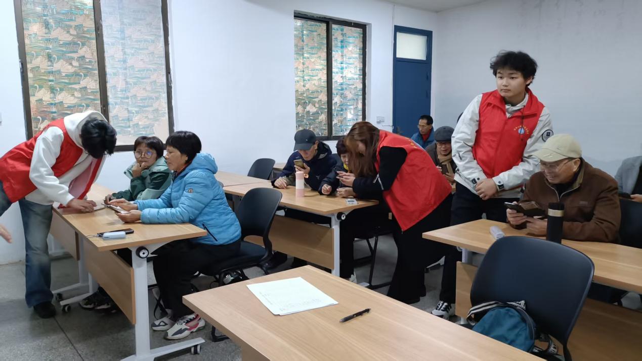 学生志愿者们全程耐心十足,一对一协助老年学员操作手机,从图标识别到按钮点击,细致讲解每一个步骤。当看到学员们成功创建出第一个报名接龙时,脸上露出的欣喜笑容,让志愿者们倍感成就感。“爷爷奶奶们记笔记比我们还认真,遇到问题主动提问、反复练习,这种钻研精神真的太值得我们学习了!”一名学生志愿者课后坦言,这次经历让他对“认真”二字有了更深刻的理解。