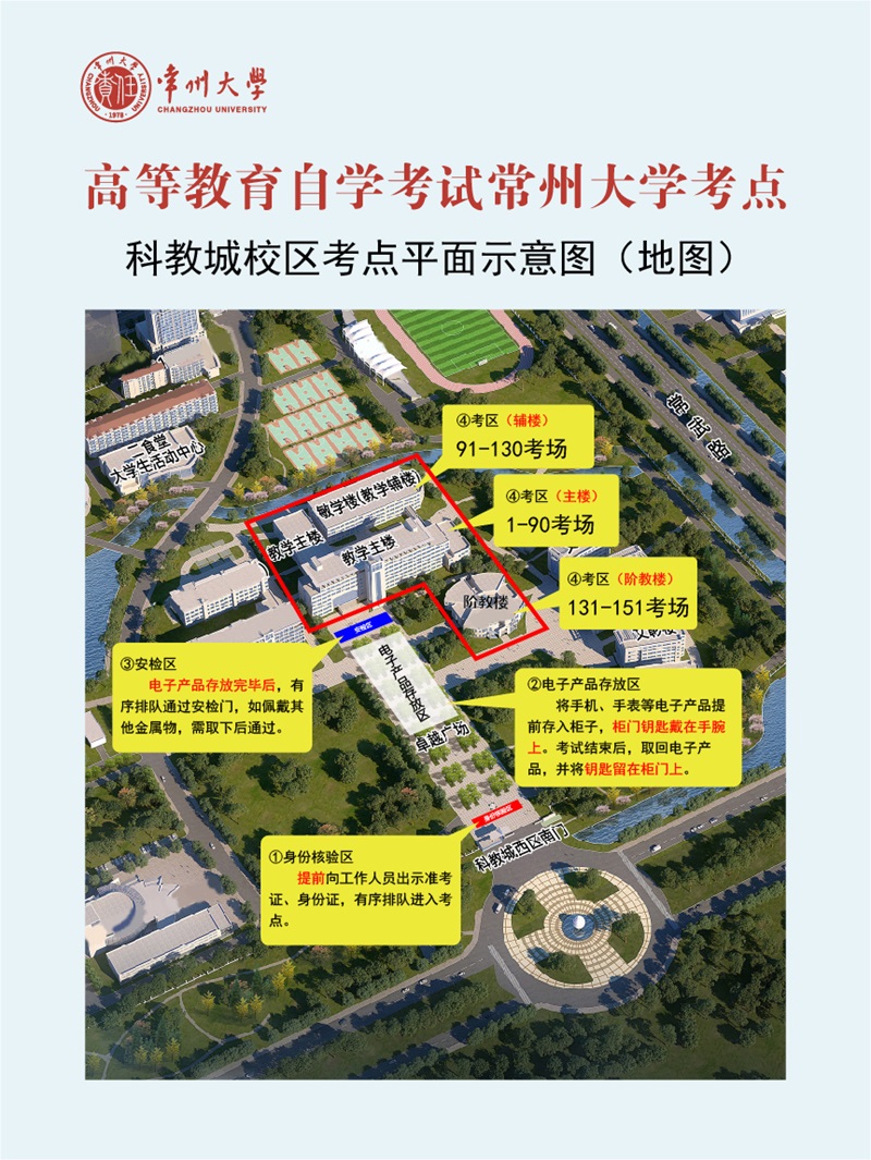 一、进校地点:常州大学科教城校区南门(位于武进区香樟大道),北门不设考生进校通道。